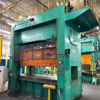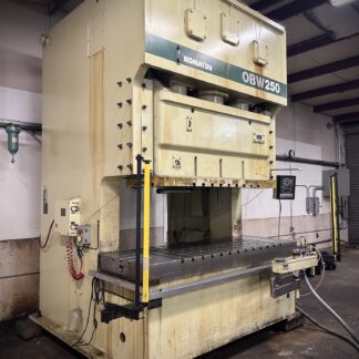 | MAX. CAPACITY | 66 TONS | MAX. STROKE | 2.36" | MAX. DIE HEIGHT | 11.81" OVER BOLSTER PLATE (5.12" THICK) | BED AREA | 29.6" X 21.7" (RL X FB) | SPEED | 0-150 SPM | RAM / SLIDE ADJUSTMENT | 2.56" | RAM / SLIDE AREA | 19.7" X 15.75" (RL X FB) | BOLSTER PLATE | 29.6" X 21.7" (RL X FB) X 5.12" THICK | DISTANCE BETWEEN UPRIGHTS | 22.7" | FLOOR TO BOLSTER HEIGHT | 35.4" | WINDOW SIZES | 15.7" WIDE X 15.7" HIGH | PRESS CONTROLS | KOMATSU SIT IV Control System (PRECISE DIGITAL DATA) | ELECTRIC SERVO MOTOR | 11 KW SERVO MOTOR WITH TOGGLE-LINKAGE DESIGN | APPROX. DIMENSIONS | 46.7" X 59.6" (RL X FB) X 116.1" HIGH | APPROX. WEIGHT | APPROX. 11,000 LBS | Equipped With | Plunger Guide System Auto Die Height Adjustment Quick-responding, dependable hydraulic overload protector Precision, Oil-Lubricated 6-Point Gibbing Air Counterbalance System | Note | THIS PRESS IS DESIGNED WITH A Linear Scale |