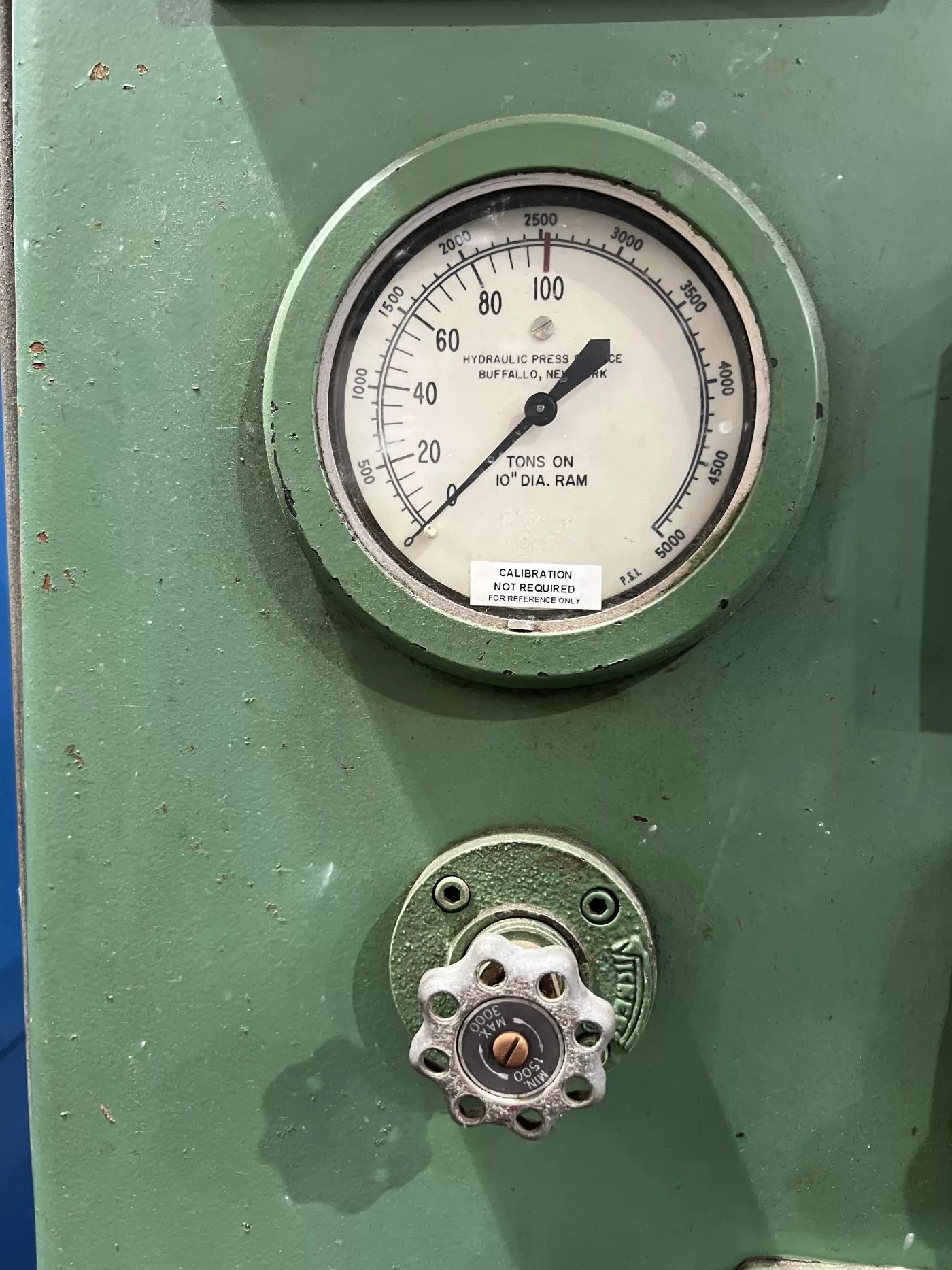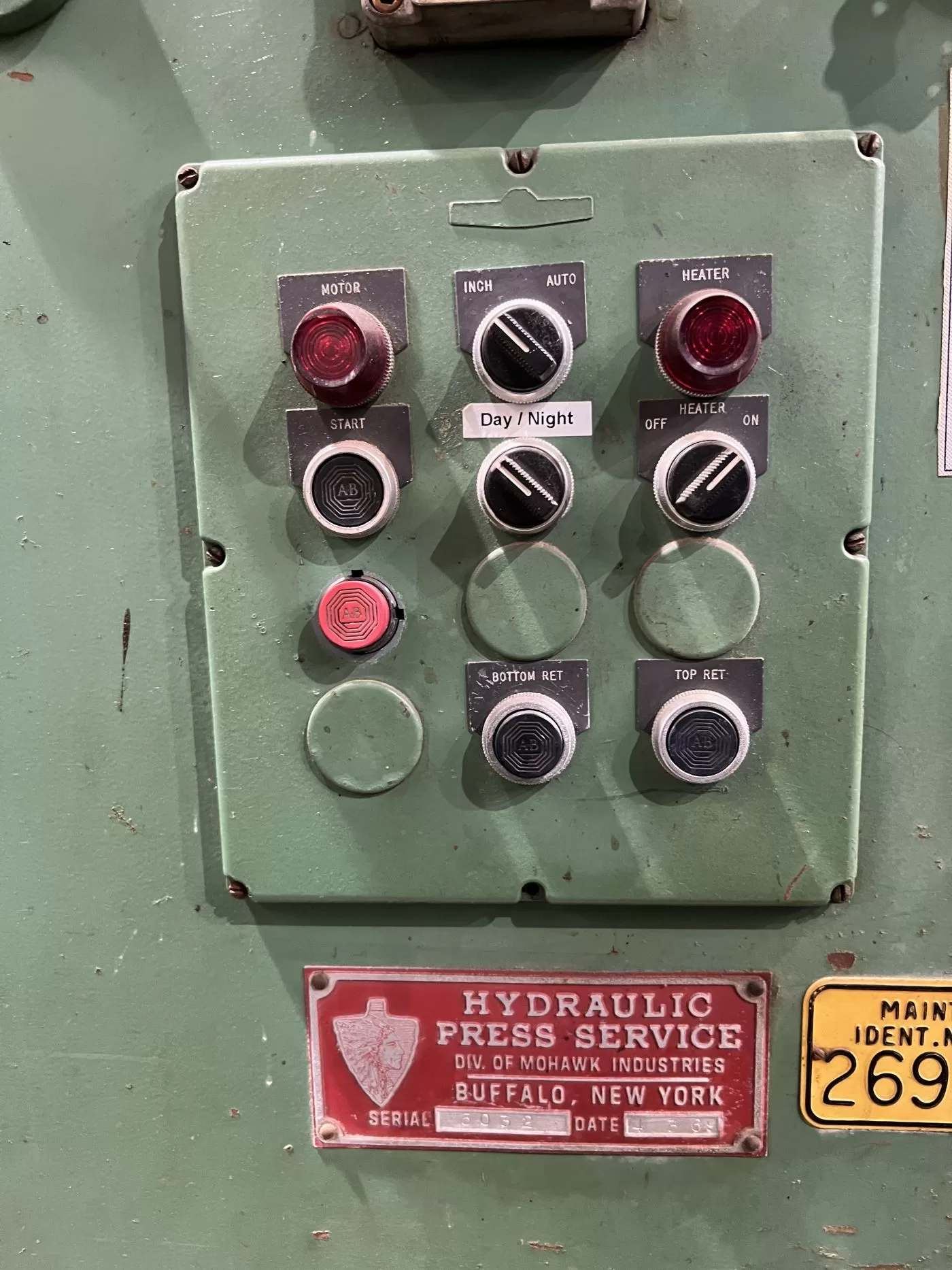 | MAX. CAPACITY | 100 TONS | MAX. stroke | 14.5" | max. daylight | 42" | overall bed & ram area | 43.25" X 24" (RL X FB) | distance between posts | 32" X 13" (RL X FB) | useable bed area | 32" X 24" (RL X FB) | HEATED PLATEN | 30" X 24" (RL X FB) X 3" THICK (AS-IS) | floor to bed height | 39" | speeds | TBD | cylinder size | CONTROLS REFERENCE A 7" PISTON AS WELL AS A 10" PISTON. | -- | BOTTOM CYLINDER APPEARS TO BE CLOSER TO THE 7" PISTON - MAY ONLY BE 50 TONS CAPACITY | ram rod size | APPROX. 6" DIA. | posts/ 4 column size | 3.5" DIA. | PRESS controls | ALLEN-BRADLEY BULLETIN 700 RELAY LOGIC CONTROLLER | hydraulic system | __ | ELECTRIC MOTOR | 7.5 HP 220/440V-3-60 REULAND MOTOR | 23.6 / 11.8 AMPS | APPROX. DIMENSIONS | 56" X 46" (RL X FB) X 103" HIGH | HYDRAULIC UNIT & CONTROLS | 64" X 51" (RL X FB) X 88" | approx. weight | __ | Equipped With | __ | Note | __ |