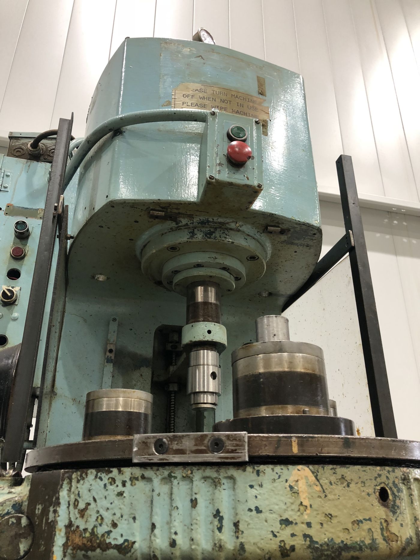| CAPACITY | 12 TONS AT 1910 PSI | MAX. STROKE | 12" | MAX. DAYLIGHT TO BED | 18" - 11.5" to rotary Table | BED AREA | 21" DIA. ROTARY TABLE | RAM AREA / PISTON | 2.75" DIA./ 4 DIA. PISTON | THROAT DEPTH | 10" | FLOOR TO BED | 28" WITH BASE 12" WITHOUT BASE | SPEED | -- | HYDRAULICS | PUMP NO. TMB-006-21R-4 | 9 GALLON PER MINUTE | 20 GALLON TANK RESEVOIR | CONTROLS | ALLEN-BRADLEY MICROLOGIX 1000 | ELECTRICS | 7.5 HP GE MOTOR 440V-3-60HZ | 20.4/10.2 AMPS | 1800 RPM | APPROX. DIMENSIONS | 36" X 36" (RL X FB) X 80" HIGH | APPROX WEIGHT | 3,500 LBS | Equipped With | 21" DIA. 3 STATION ROTARY INDEX TABLE MODEL IT106L | Note | __ |