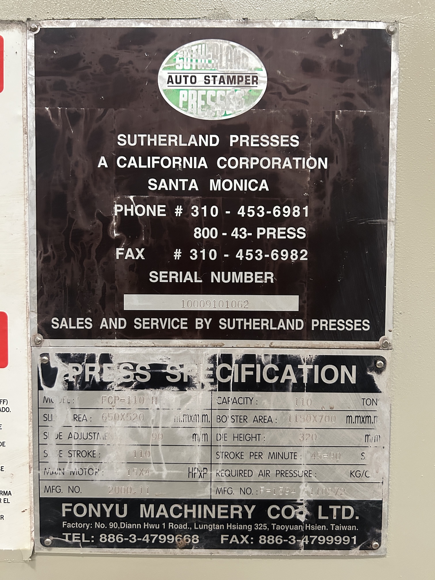 Model: Sutherland FCP-110H / Mark-121 Press
