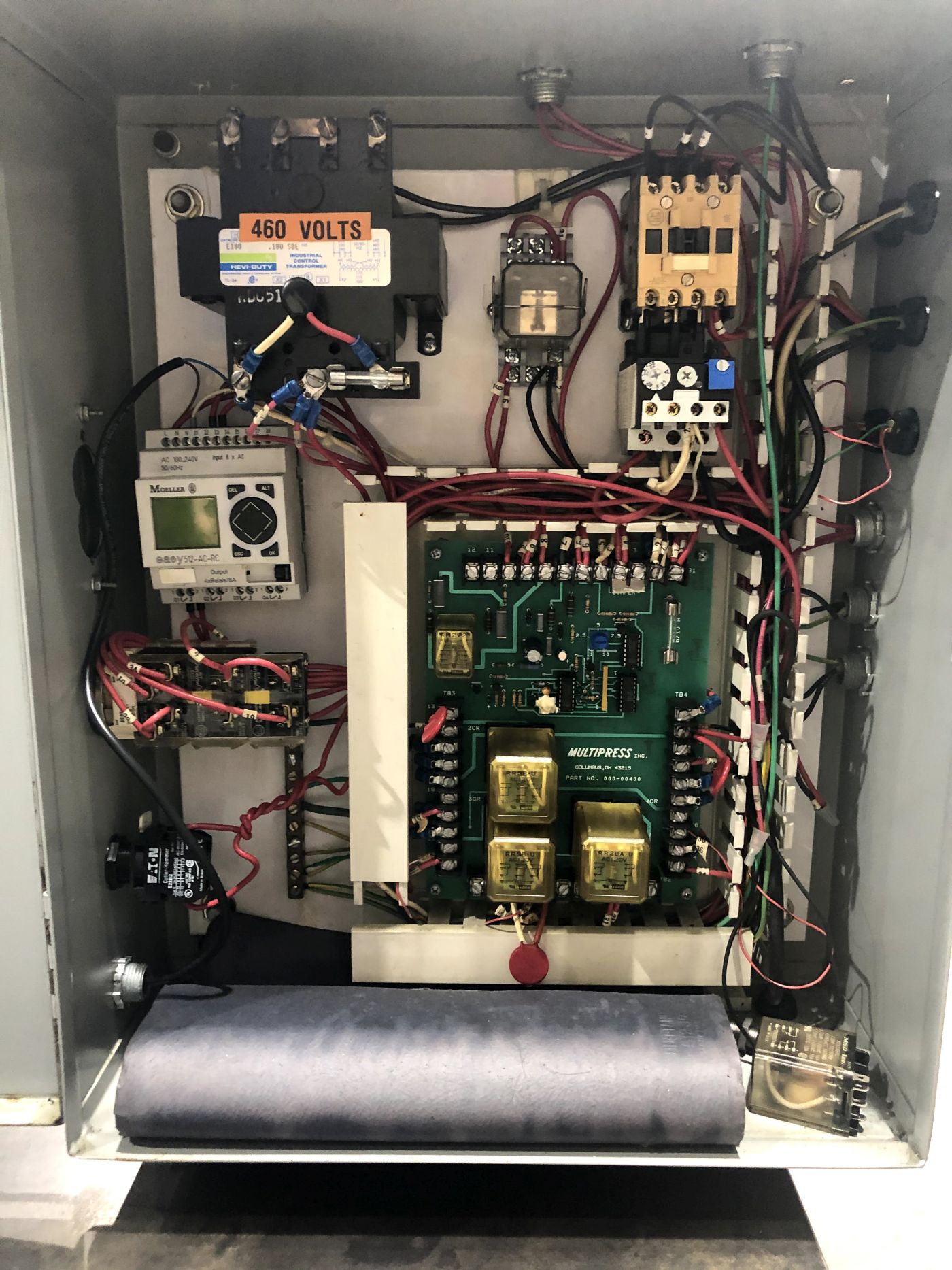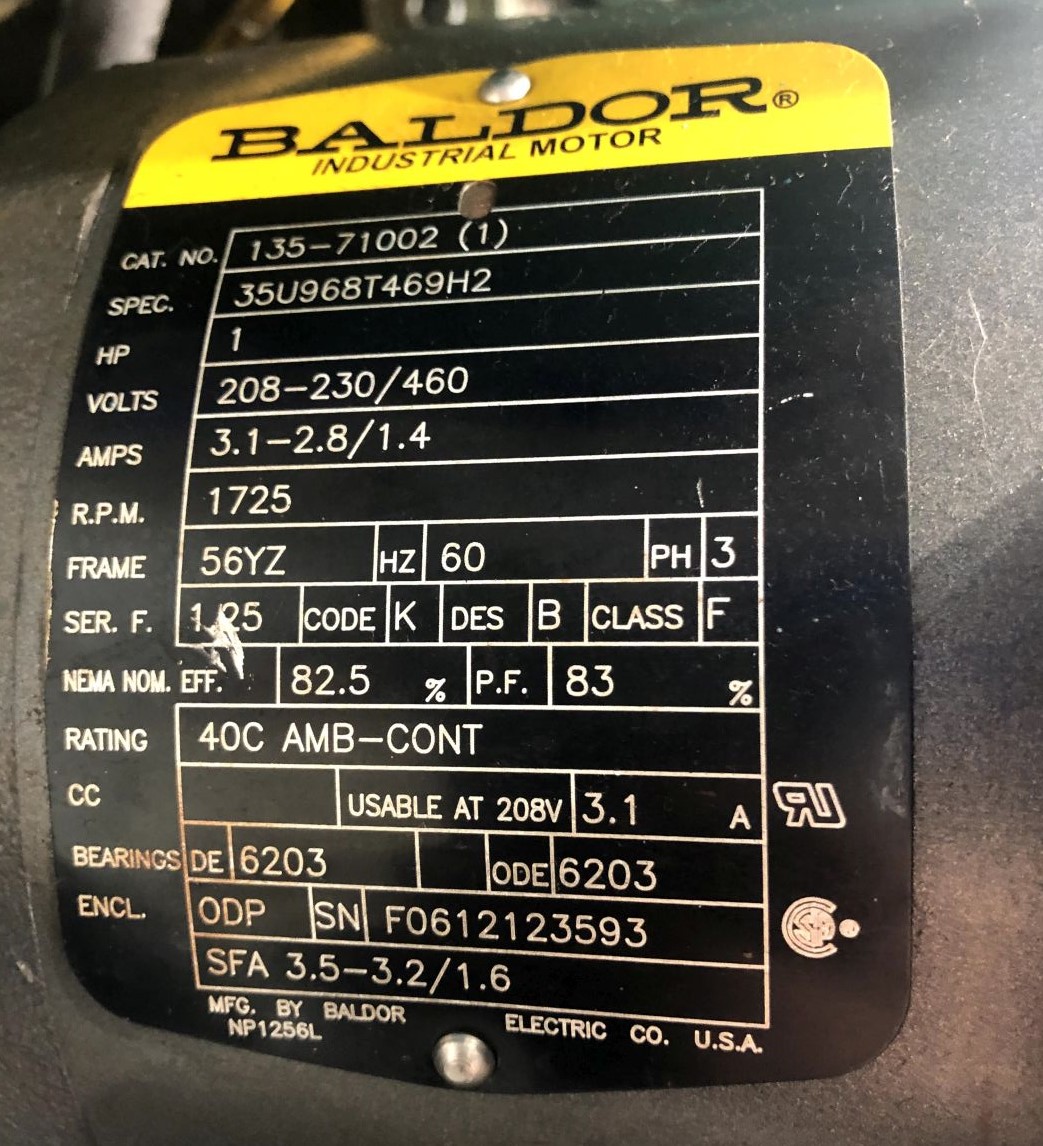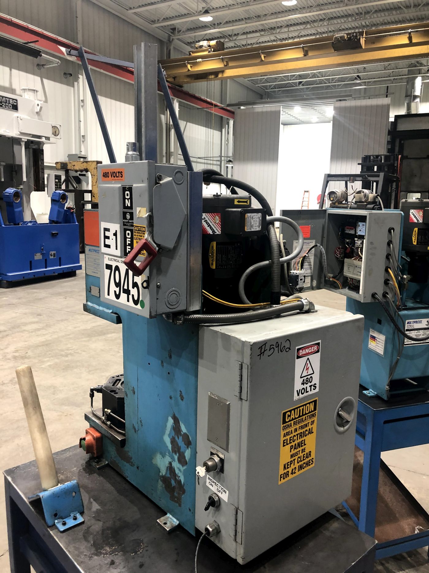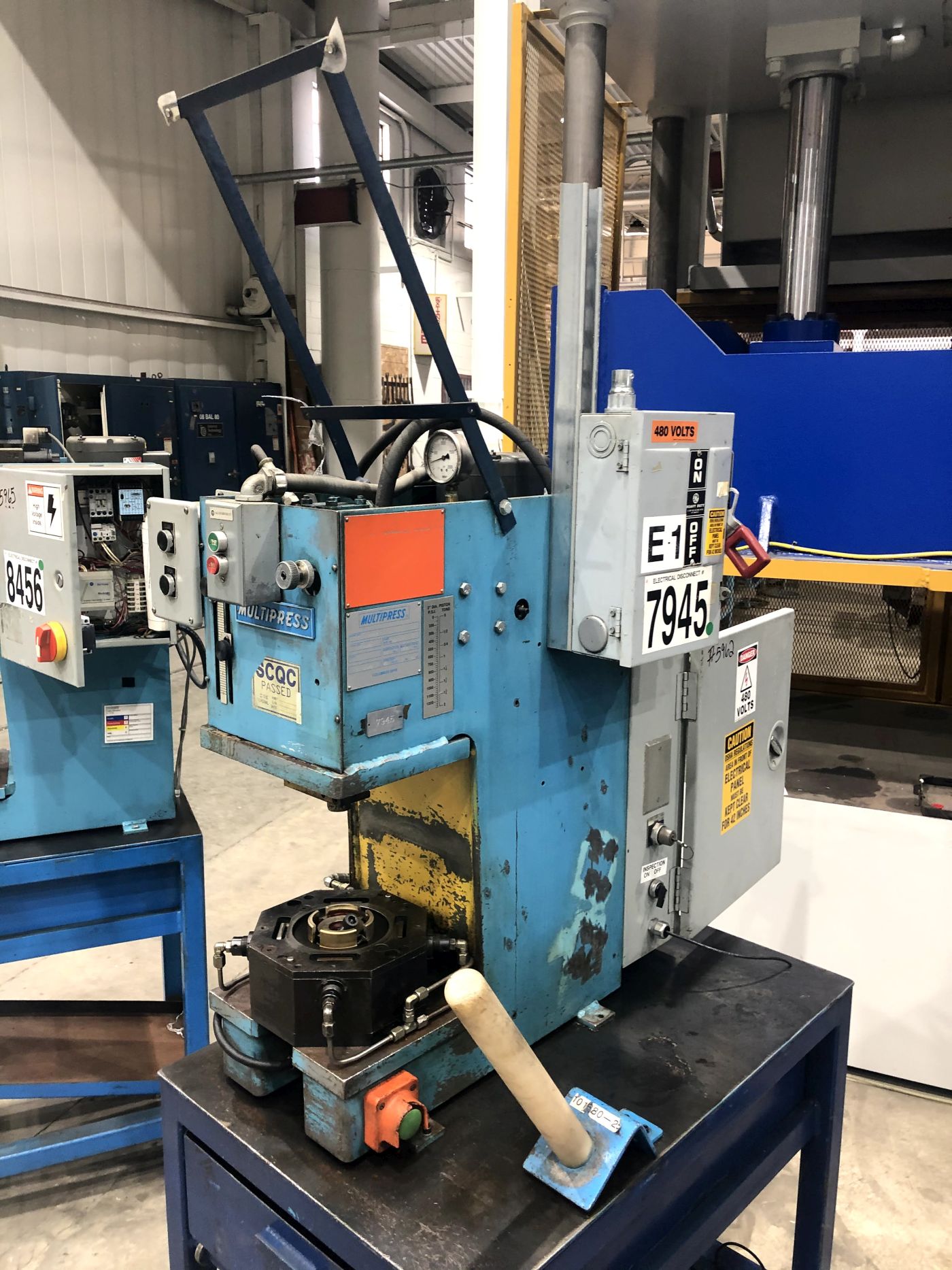 | CAPACITY | 2 TONS | STROKE | 3" | DAYLIGHT | 10.266" | BED AREA | 12" X 9" (RL X FB) | THROAT | 4.5" | CYLINDER SIZE | 2" DIA. BORE | RAM ROD SIZE | 1.375" DIA. | FLOOR TO BED | 5" PRESS ONLY | SPEEDS | 600 APPROACH / 100 PRESSING / 600 RETURN - INCHES PER MINUTE | PRESS CONTROLS | MULTIPRESS CONTROLS / MOELLER EASY 512-AC-RC CONTROLLER | ELECTRICAL | 1 HP 208-230/460V-3-60 BALDOR INDUSTRIAL MOTOR | 3.1 - 2.8 / 1.4 AMPS | HYDRAULICS | BARNES HYDRAULIC PUMP / 5.5 GALLON RESERVOIR | DIMENSIONS | 25" X 36" (RL X FB) X 86 HIGH (HEIGHT NEEDS TO BE REMEASURED WITHOUT TABLE) | APPROX. WEIGHT | 300 LBS. | Equipped With | __ | Note | TABLE SHOWN IN PHOTOS IS NO LONGER WITH THIS PRESS, PRESS SOLD WITHOUT STAND / TABLE. |