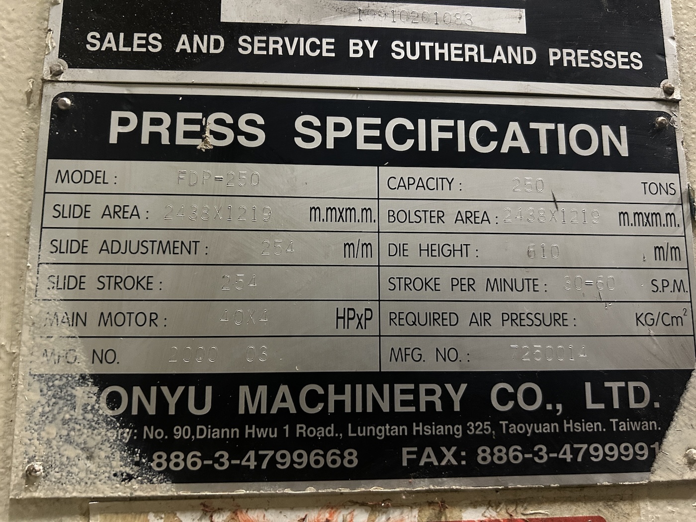 275 Ton Sutherland Press • Used Sutherland FDP-250 Press