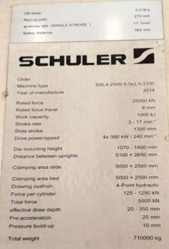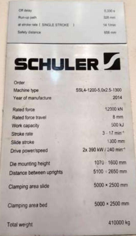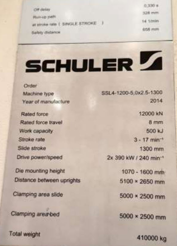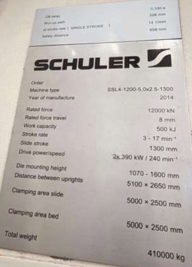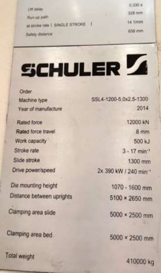 Model: Schuler SSL4-2500-5.0X2.5-1300 / SSL4-1200-5.0x2.5-1300 Press