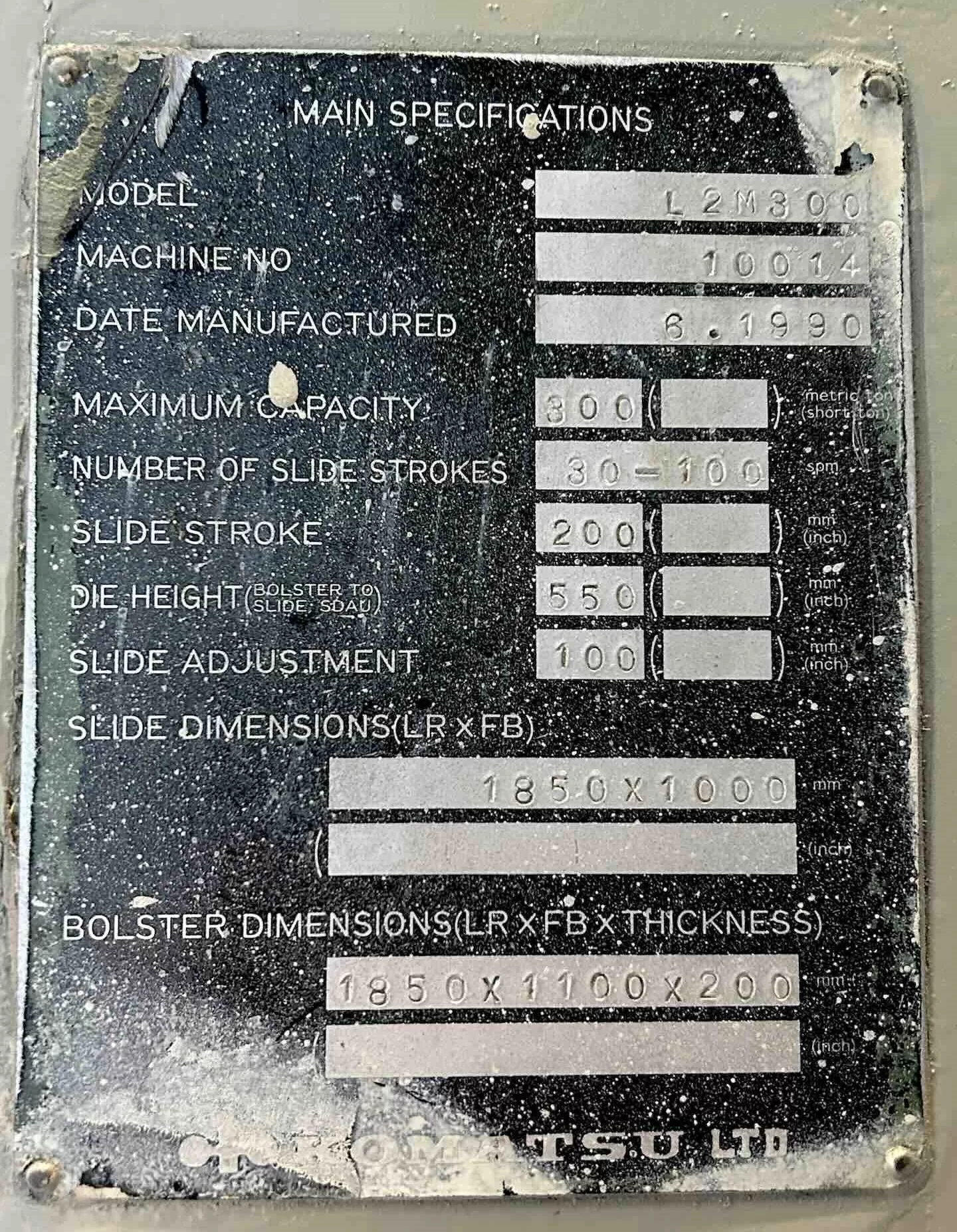 Model: Komatsu L2M-300 Press