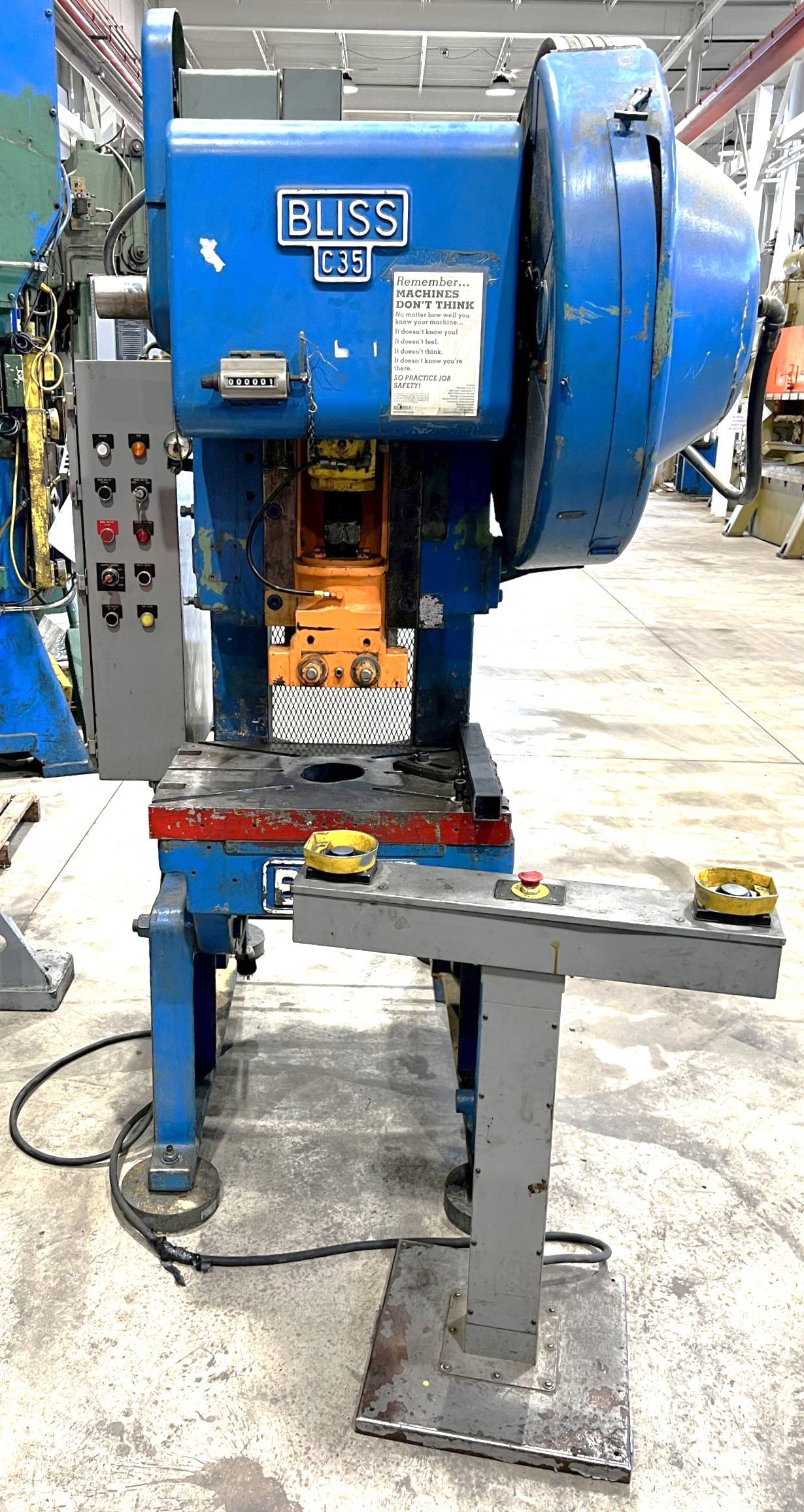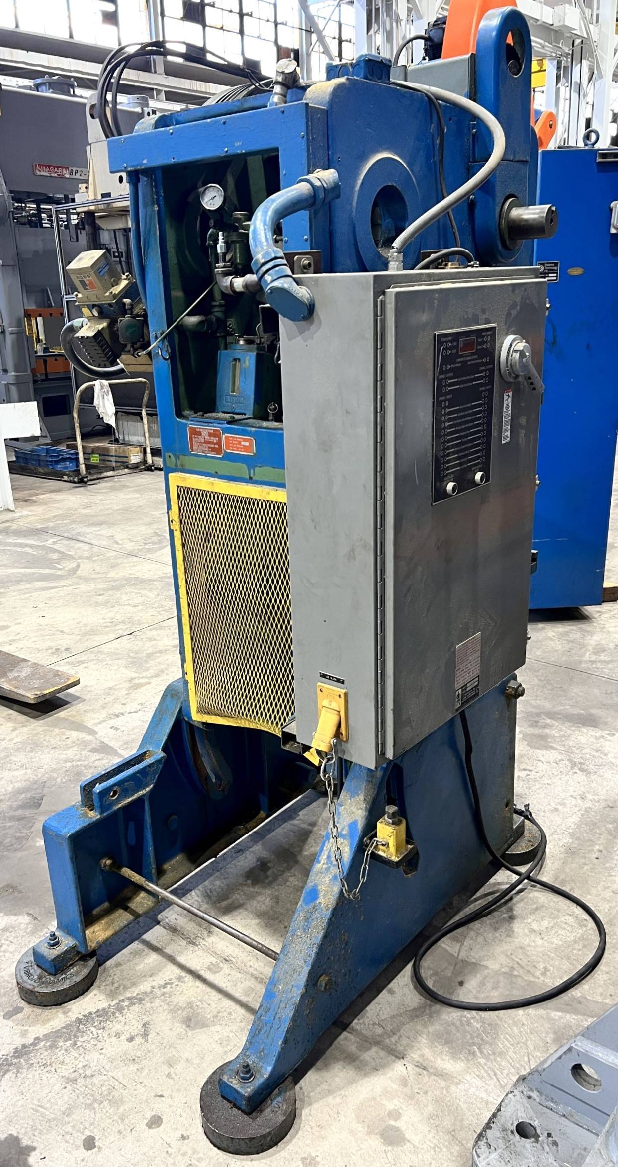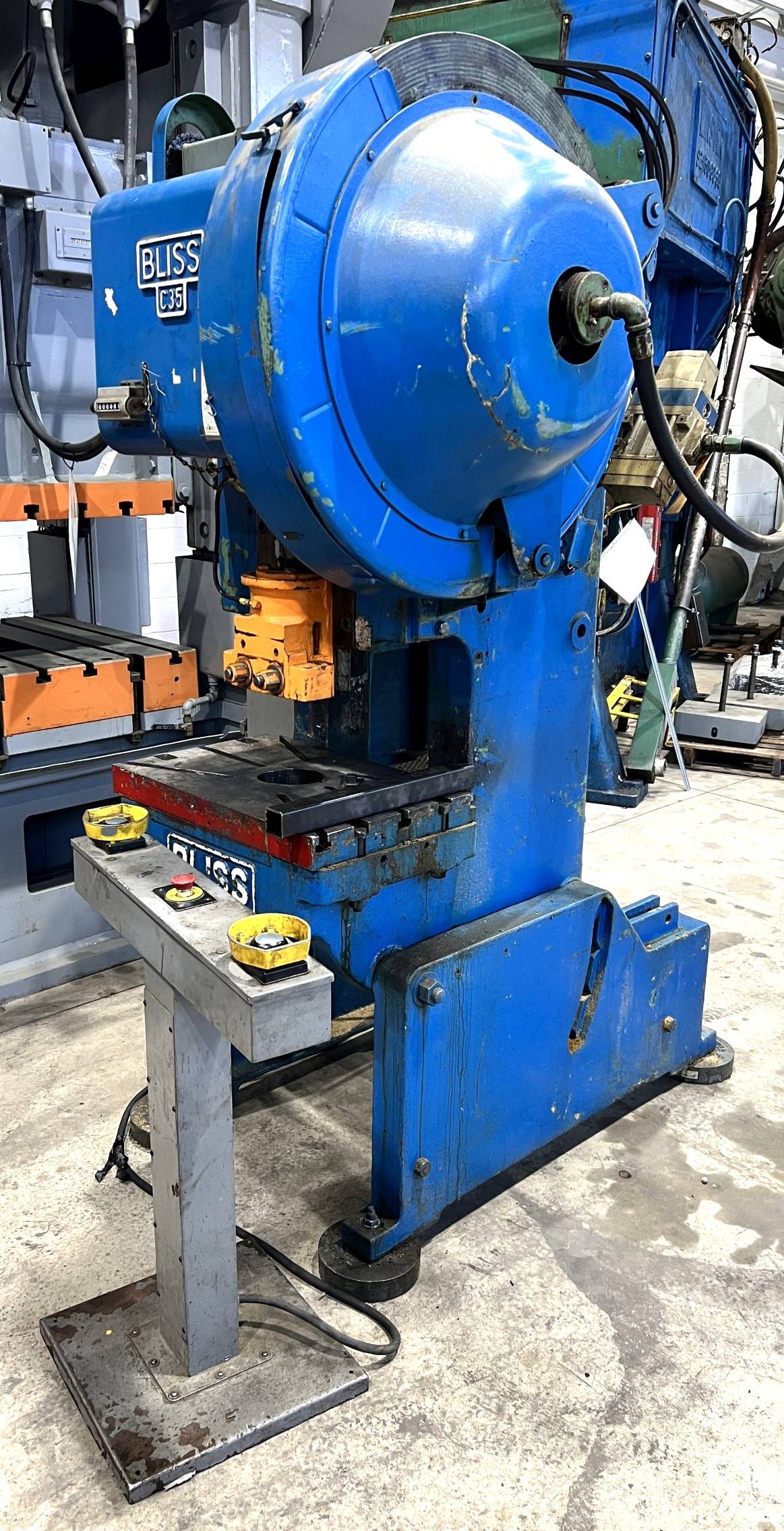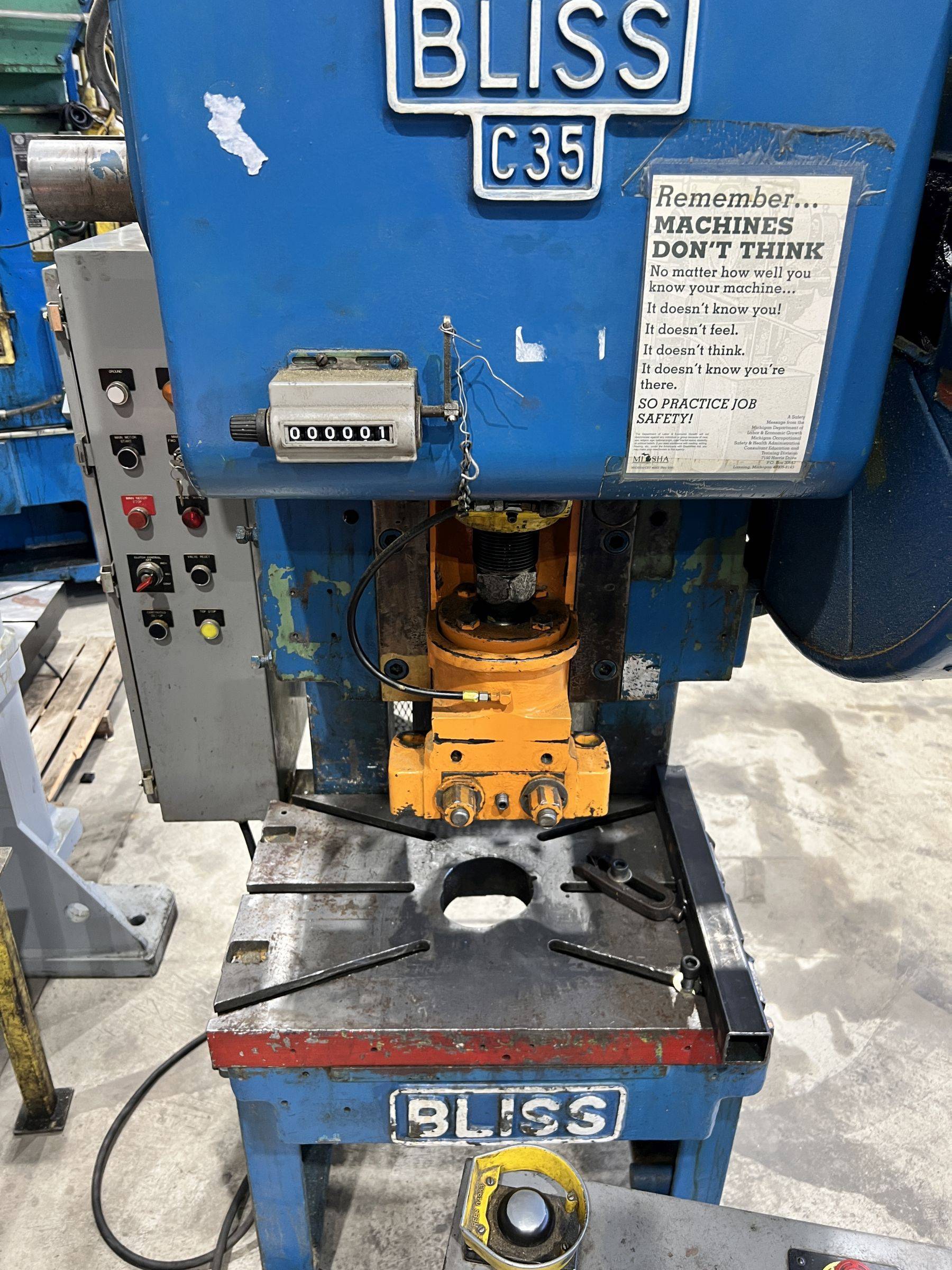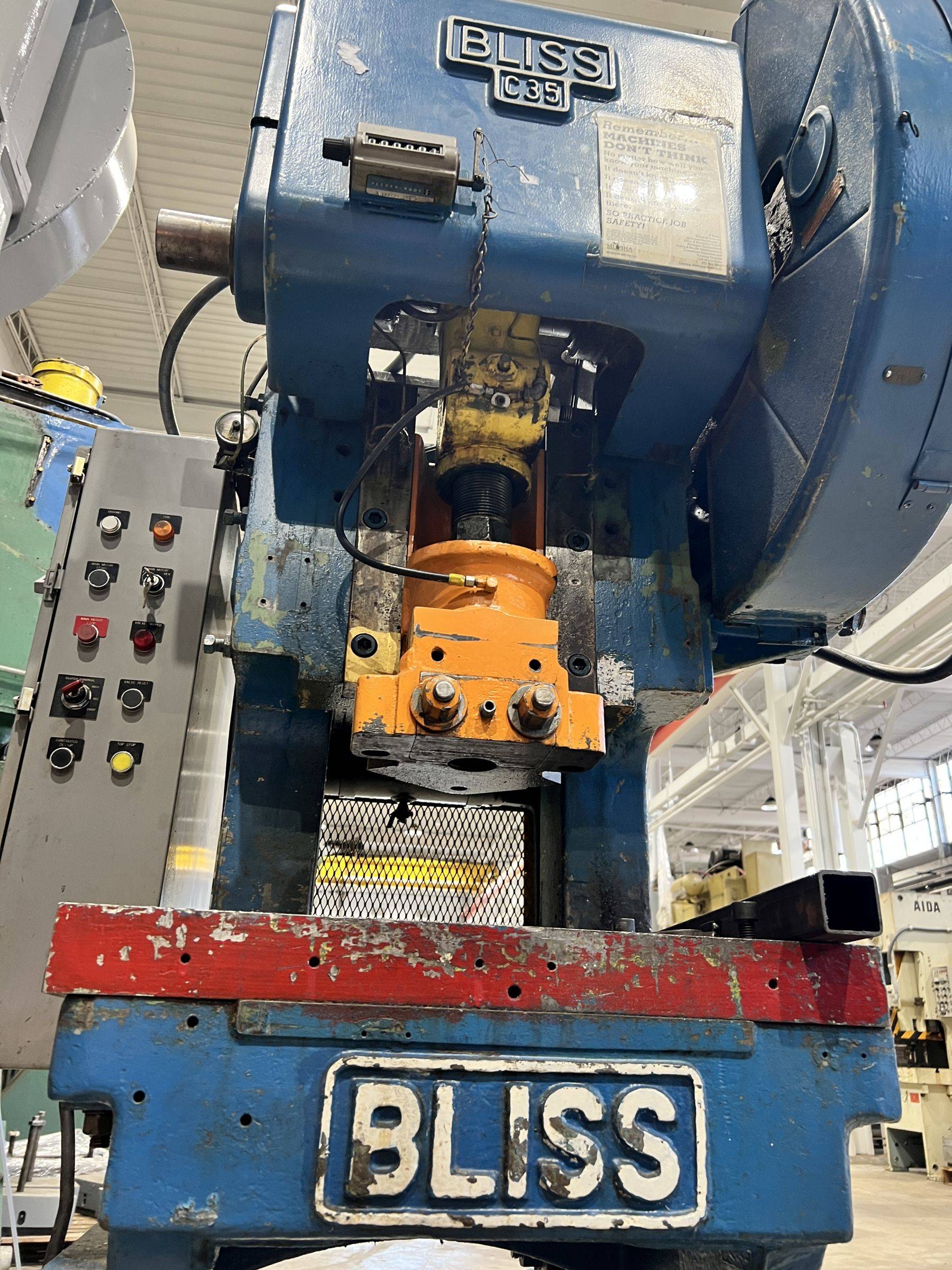 | CAPACITY | 35 TONS | STROKE | 1.5" | MAX. SHUT HEIGHT TO BED | 11.5" | BED AREA | 26" X 17" (RL X FB) | BOLSTER PLATE SIZE | 26.5" X 17.5" (RL X FB) | RAM AREA | 10.5" X 8.75" (RL X FB) | RAM ADJUSTMENT | 2.5" MANUAL | SPEED | 100 SPM | DISTANCE BETWEEN UPRIGHTS | 12.75" | FLOOR TO BED HEIGHT | 33" | CLUTCH | BLISS AIR CLUTCH / BRAKE COMBINATION | PRESS CONTROLS | UPDATED LINK CONTROLLER | ELECTRIC MOTOR | 3 HP OR 5 HP MOTOR TO BE ADDED DURING RECONDITIONING PROCESS | APPROX. DIMENSIONS | 55" X 74" (RL X FB) X 98" HIGH | APPROX. WEIGHT | 5,000 LBS. | Equipped With | __ | Note | 4 IN STOCK |
