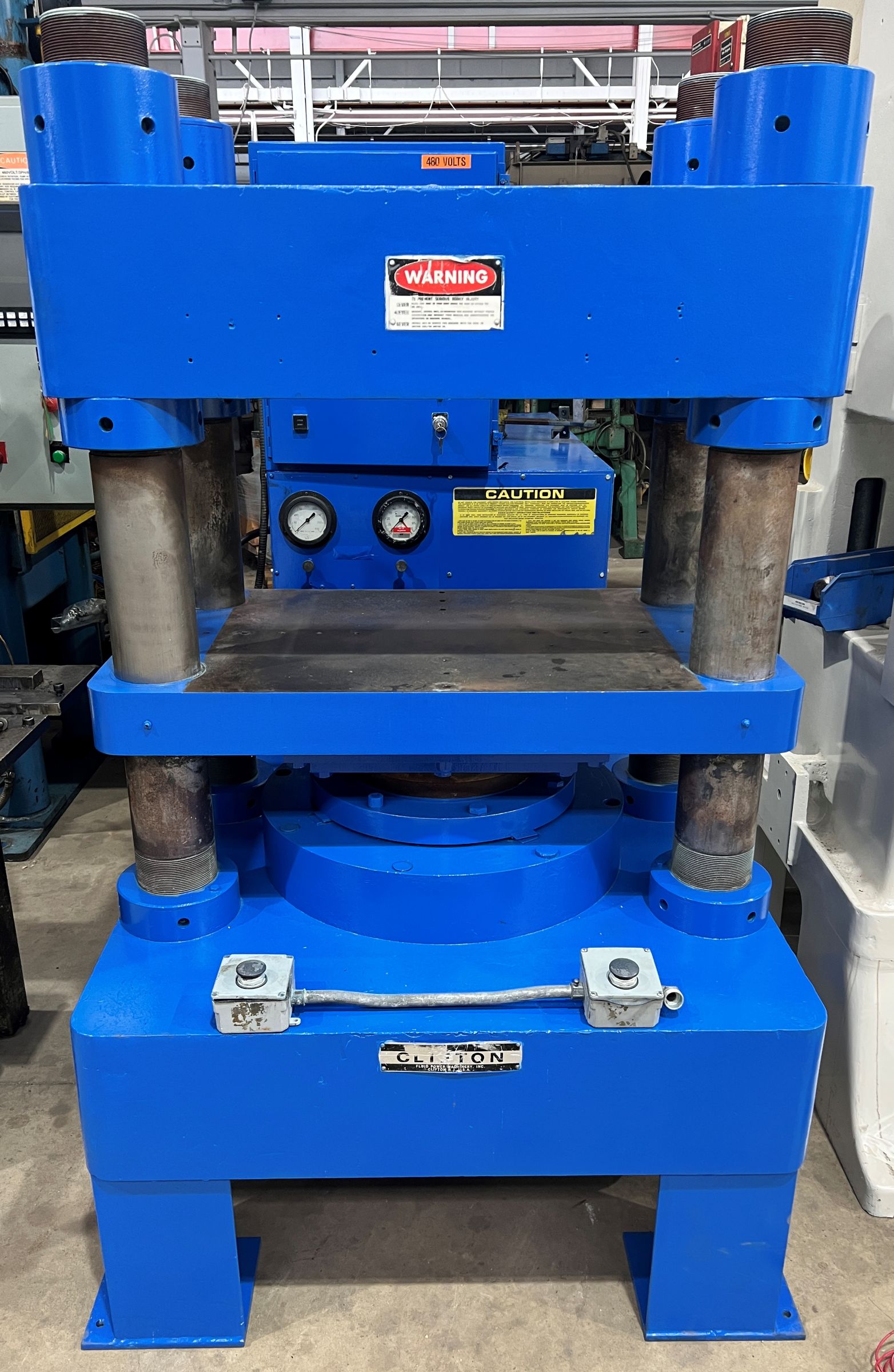 | CAPACITY | 400 TONS AT 4,525 PSI | STROKE | 10" | DAYLIGHT | 18.5" | OVERALL BED & RAM AREA | 42" X 24" (RL X FB) | DISTANCE BETWEEN POSTS | 29.5" X 11" (RL X FB) | USABLE BED AREA | 29.5" X 24" (RL X FB) | HEATED PLATEN OPTION | 24" X 24" (RL X FB) - NEW HEATED PLATENS CAN BE ADDED FOR AN ADDITIONAL $17,000 (ref #4031) | FLOOR TO BED HEIGHT | 40" | RAM ROD SIZE | 12" DIA. | CYLINDER SIZE | 15" DIA. BORE | 4 COLUMN / POSTS SIZE | 5" DIA. | PRESS CONTROLS | ALLEN-BRADLEY SLC 100 PROGRAMMABLE CONTROLLER | HYDRAULICS | 45 GPM LOW PRESSURE, 2 GPM HIGH PRESSURE | ELECTRICAL | __ | APPROX. DIMENSIONS | 45" X 51" (RL X FB) X 74" HIGH (PRESS) | 44" X 64" (RL X FB) X 72" HIGH CONTROLS / HYD UNIT | APPROX. WEIGHT | __ | Equipped With | __ | Note | __ |