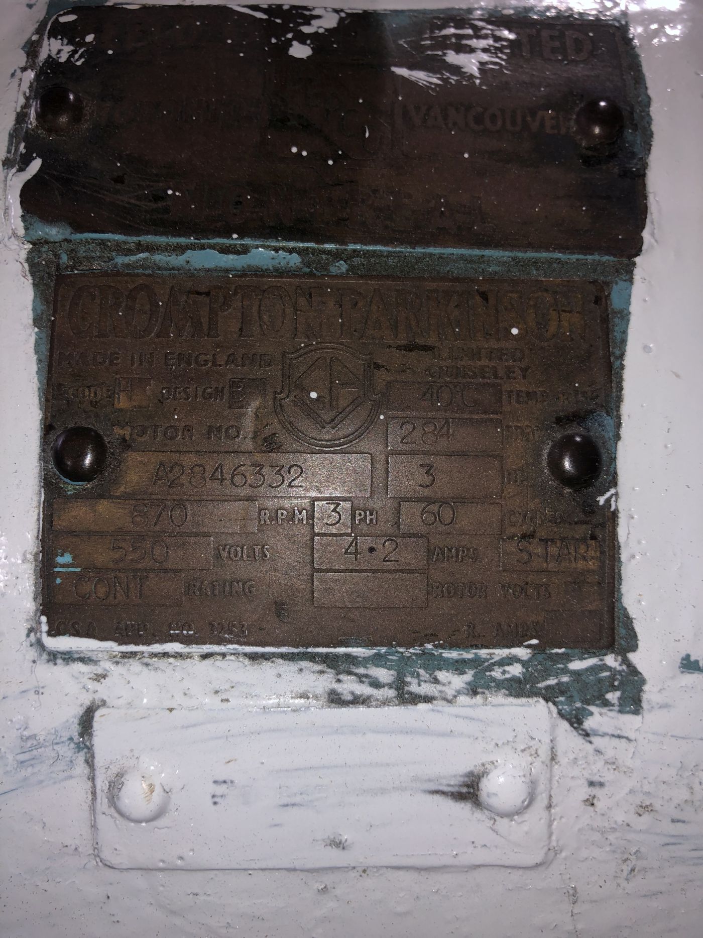 ELECTRIC MOTOR 3 HP 1150 rpm 550V-3-60 | 4.2 AMPS