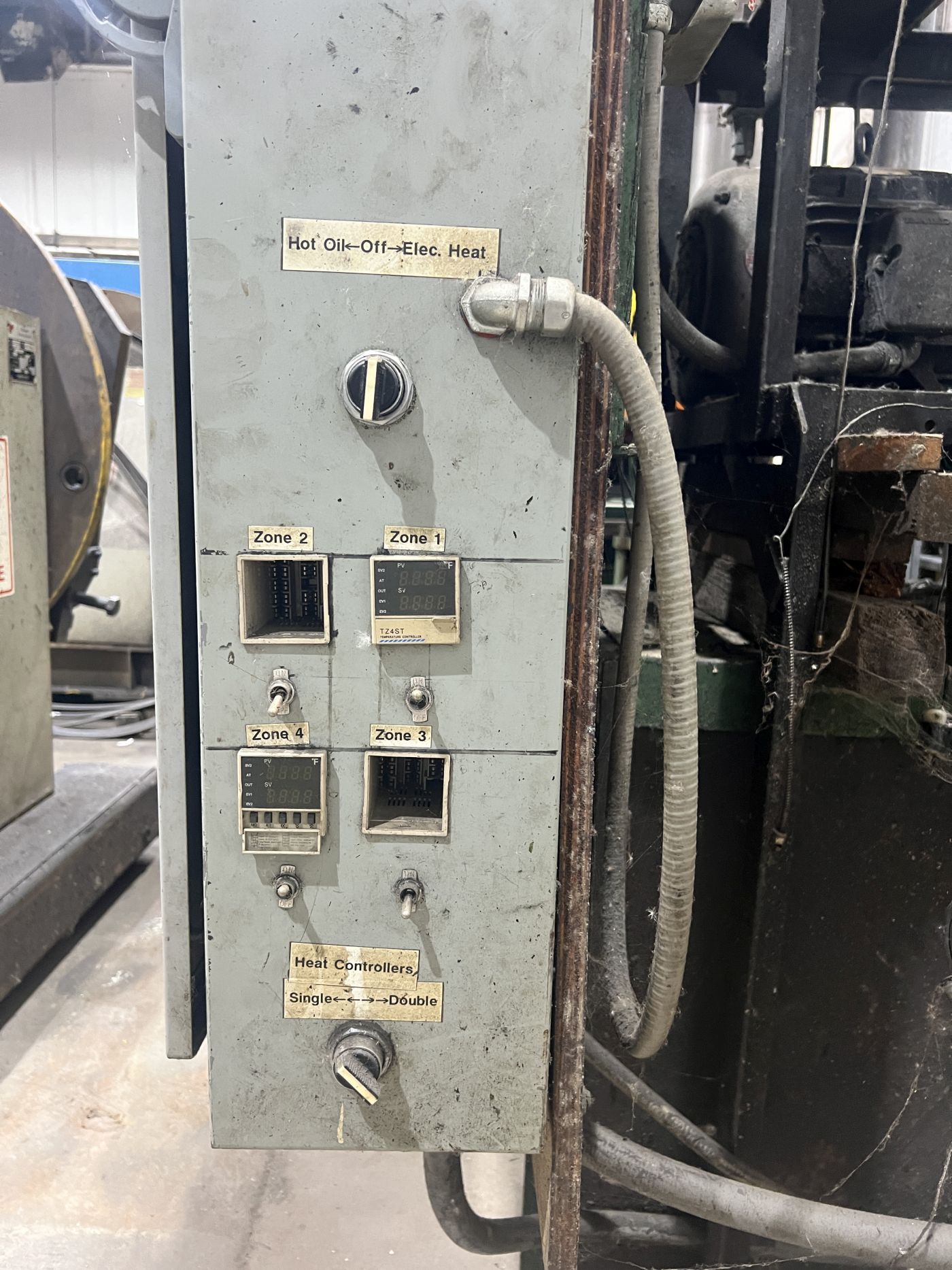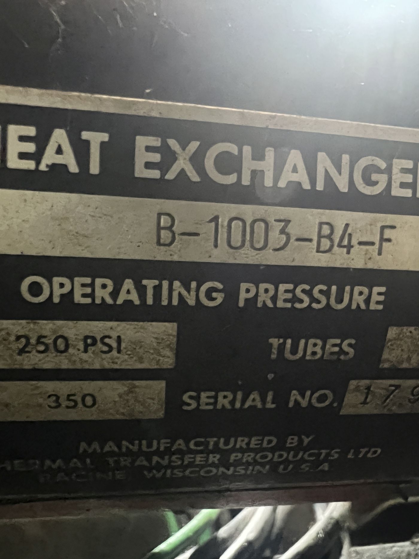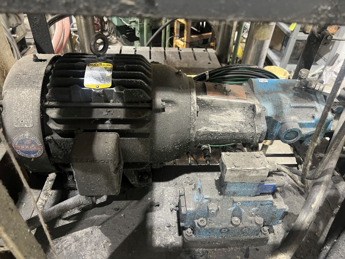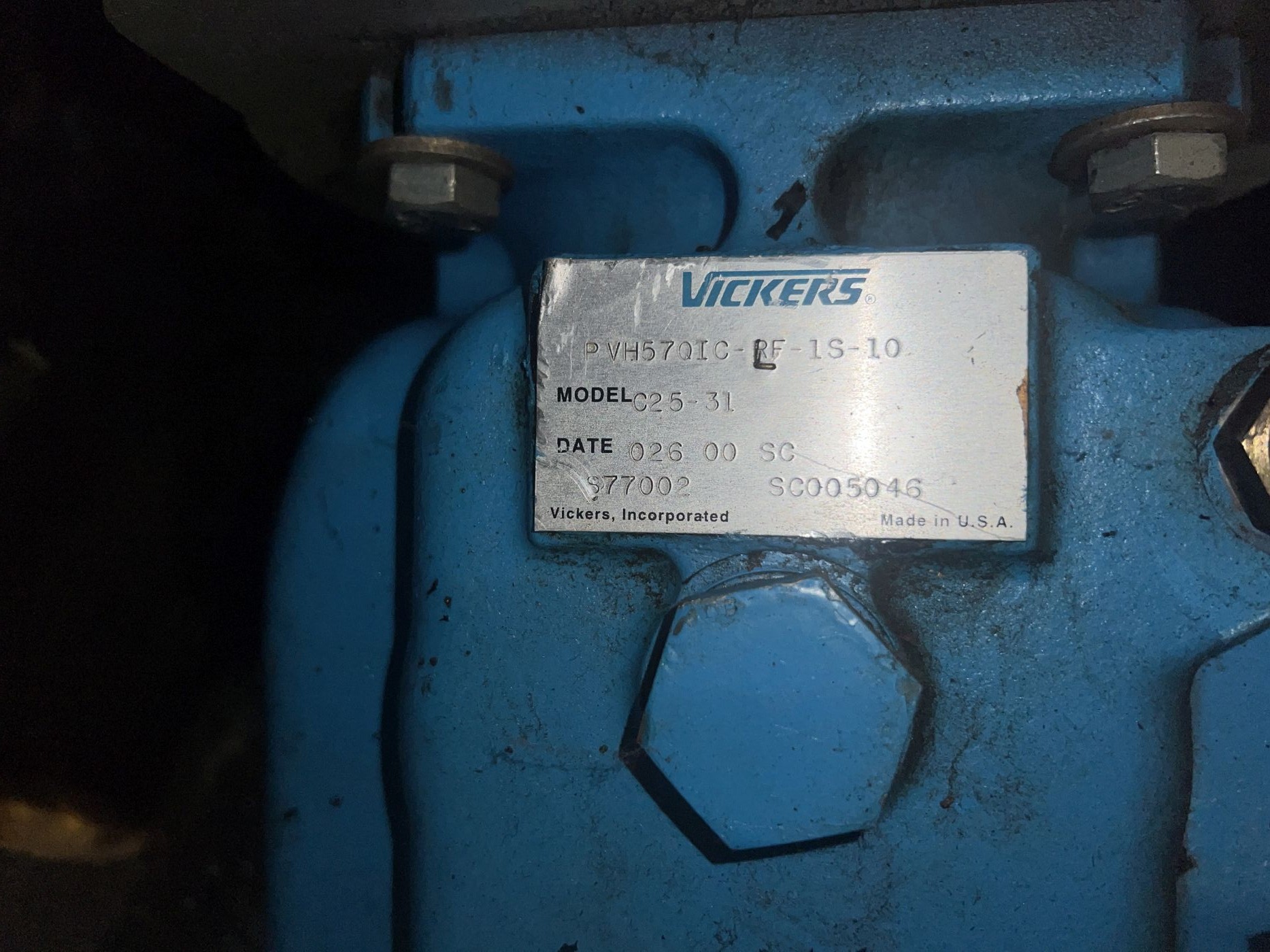 | CAPACITY | 600 TON @ 3,175 PSI | MAX. STROKE | 36" | MAX. DAYLIGHT TO BED | 71" | DISTANCE BETWEEN POSTS | 48.5" X 22" (RL X FB) *APPROX. | USABLE BED & RAM AREA | 48" X 42" (RL X FB) t-sLOTTED RAM & BED | POST SIZE | 6-1/2" DIA. | DISTANCE FLOOR TO BED | 24" | ROD SIZE | 21" DIA. | MAIN CYLINDER SIZE | 22" DIA. BORE | PRESS CONTROLS | RELAY LOGIC CONTROLS, NEW UPGRADED CONTROLS AVAILABLE FOR MINIMAL COST | HYDRAULIC SYSTEM | VICKERS PUMP PVH57QIC-LF-1S-10 MODEL C25-31 | PVB 20 RS 20 C 11 | PVB20 RS 20 0M 11 | HYDRAULIC SYSTEM (CONT) | 60 GPM RACINE & 24 GPM DELAVAN PISTON PUMPS | ELECTRIC MOTOR 1 | 40 HP 230/460V-3-60 STERLING MOTOR | 99 / 49.5 AMPS | ELECTRIC MOTOR 2 | 15 HP 230/460V-3-60 BALDOR INDUSTRIAL MOTOR | 38 / 19 AMPS | ELECTRIC MOTOR 3 | 15 HP 230/460V-3-60 BALDOR INDUSTRIAL MOTOR | 38 / 19 AMPS | OVERALL DIMENSIONS | 96" X 60" (RL X FB) X 208" HIGH | APPROX. WEIGHT | 60,000 LBS. | Equipped With | LOWER SIDE KNOCKOUT CYLINDERS 6" STROKE, FLOOR STANDING DESIGN, HEATER CONTROLLER (AS-IS), THERMAL TRANSFER PRODUCTS HEAT EXCHANGER MODEL B-1003-B4-F (250 PSI, 350 DEG F) | Note | POTENTIALLY ADDITIONAL COST IF CYLINDER REQUIRES MAJOR REPAIRS (DEPOSIT REFUNDABLE) |