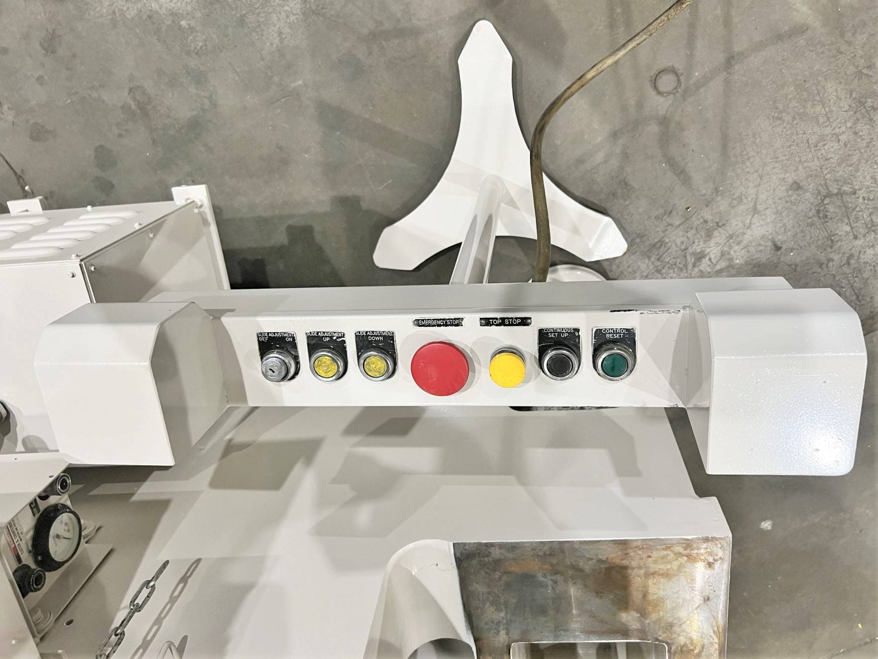 | CAPACITY | 66 US TONS | STROKE | 2.75" | MAX DIE HEIGHT | 11.8" SDAU OVER 5.1" THICK BOLSTER PLATE | BED AREA | 41.7" X 13" (RL X FB) | SPEED | 30 - 225 SPM | SLIDE ADJUSTMENT | 2.75" - MOTORIZED | SLIDE AREA | 27.6" X 15.7" (RL X FB) flanged ram | BOLSTER PLATE | 41.73" X 17.71" (RL X FB) X 5.12" THICK WITH 29.75" X 6" (RL X FB) HOLE IN CENTER | DISTANCE BETWEEN UPRIGHTS | 28.25" | FLOOR TO BED HEIGHT | 30.25" | THROAT DEPTH | 10" | CLUTCH | KOMATSU AIR CLUTCH / BRAKE COMBINATION | PRESS CONTROLS | komatsu relay press control | ELECTRIC MOTOR | 10 hp 1750 rpm 240/480v-3-60 motor | APPROX DIMENSIONS | 90" X 65" (RL X FB) X 106" HIGH OR 71" X 65" WITHOUT FEEDER | APPROX WEIGHT | 15,000 lbs | Equipped With | oil cooler floor standing cast steel frame TWO PLUNGER GUIDES FOR IMPROVED ACCURACY | Note | MANUAL IS ON FILE WITH ALMA MACHINERY OFFICE (TO BE DOWNLOADED) |