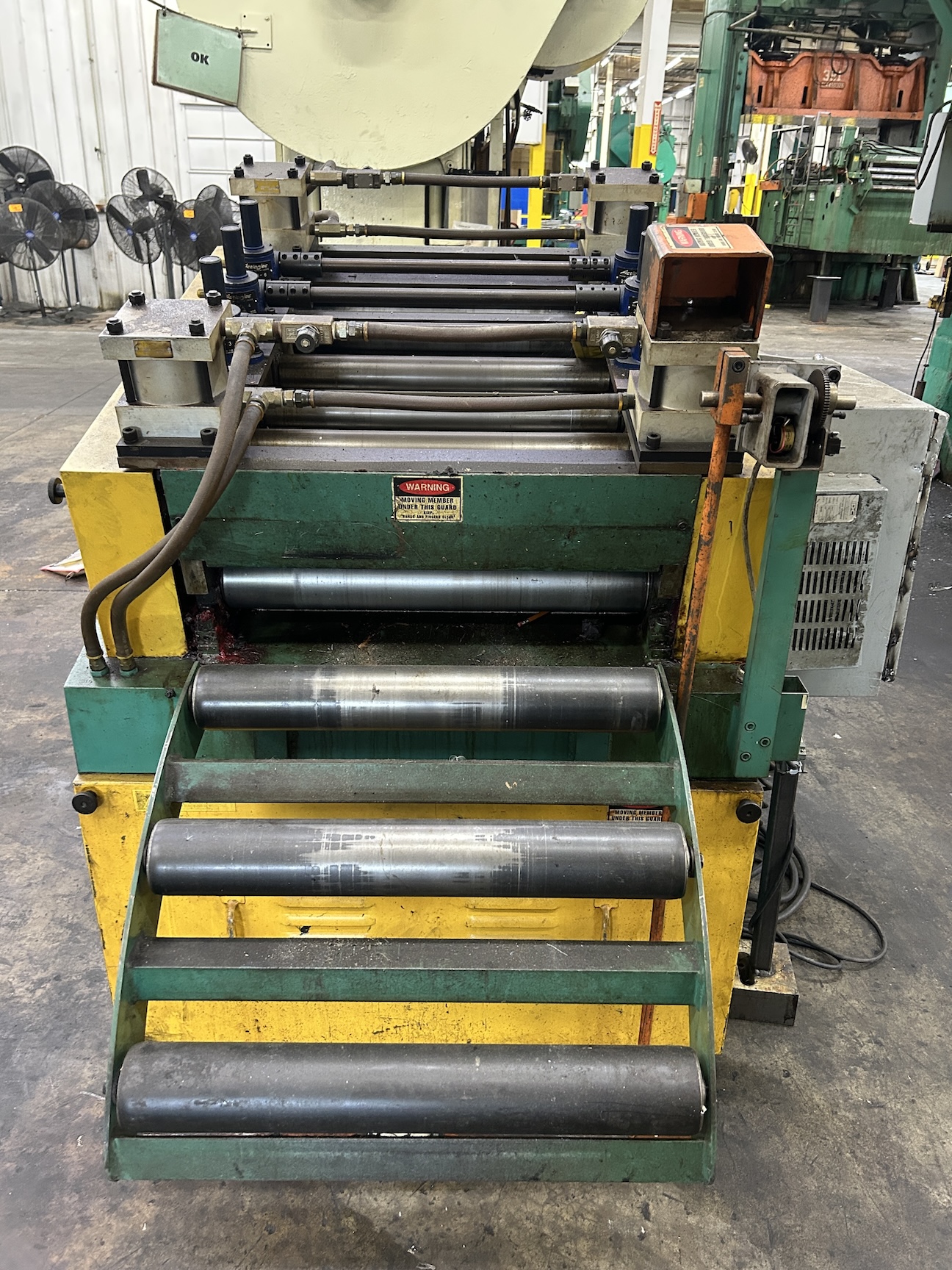| MATERIAL WIDTH | 24" | MATERIAL THICKNESS CAPACITY | APPROX. .125" | PINCH ROLL DIAMETER | APPROX. 3" DIA. | STRAIGHTENING / BREAKER ROLL DIAMETER | 3" DIA. | OPERATORS CONTROL | MECHANICAL DANCER ARM AND/OR ELECTRONIC SENSOR DANCER ARM | APPROX. DIMENSIONS | 72" X 66" (RL X FB) X 64" HIGH | APPROX. WEIGHT | __ | Equipped With | __ | Note | __ |