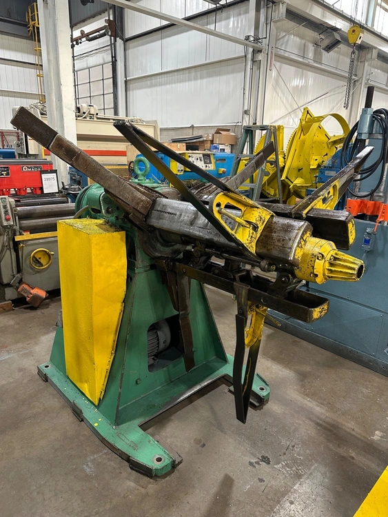 | MAX. COIL CAPACITY | 10,000 LBS. | COIL WIDTH | 30" (OVERALL ARM LENGTH OF 32") | COIL ID RANGE | 16" TO 20" | MAX. COIL O.D. | 48" | speed | APPROX. 12 RPM | direction | __ | ELECTRIC MOTOR | 5 HP 230/460V-3-60 MOTOR | DISTANCE FLOOR TO CENTER OF COIL | 43" | SIZE OF BASE | __ | APPROX. DIMENSIONS | 60" X 76" (RL X FB) X 65" HIGH | APPROX. WEIGHT | 3,500 LBS. | Equipped With | (3) COIL KEEPERS, LOOP CONTROL ARM WITH SWITCH, MANUAL REAR OPERATED MANDREL EXPANSION AND CONTRACTION WITH HAND WHEEL | Note | __ |